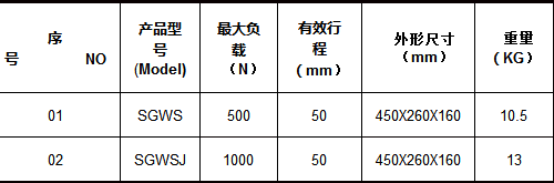 有效行程:50mm。額定負荷:500N。(也可配置1000N)
